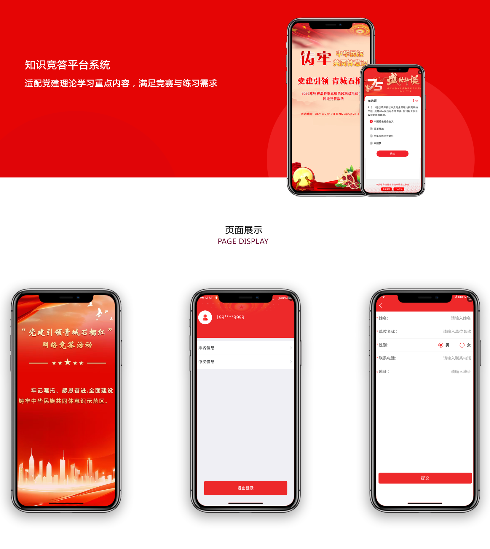 中共呼和浩特市委员会直属机关工作委员会知识竞答平台系统,是服务机关党建的数字化学习工具,核心功能聚焦三方面: 答题类型多样化,覆盖单选、多选、判断等题型,适配党建理论学习重点内容,满足竞赛与练习需求; 成绩排名可查,支持用户查看个人成绩、错题解析,同时能查看个人及所在党组织的整体排名; 获奖情况透明,竞赛后公示个人与集体获奖名单及荣誉等级,明确反馈渠道,用户可直接查询获奖信息与兑奖指引。