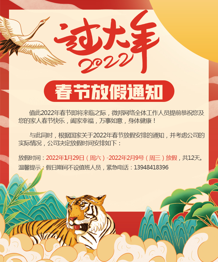 微邦网络|春节放假通知