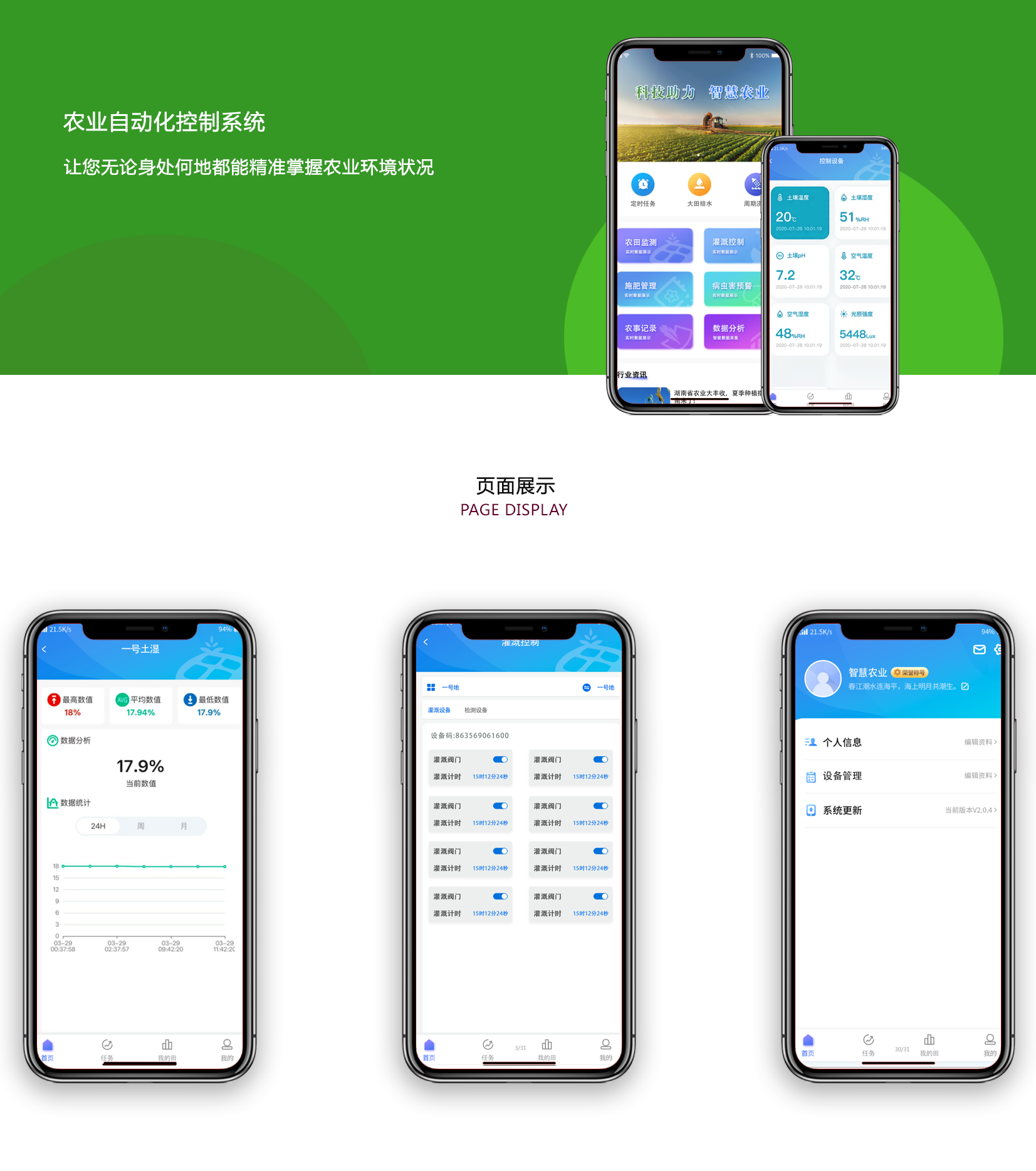 这套系统能够实时采集空气温湿度、土壤水分、温度等关键环境参数,并通过手机 APP 或小程序实现远程查看与视频监控,让您无论身处何地都能精准掌握农业环境状况。同时,系统支持远程控制灌溉、通风等设备,大幅提升生产效率,降低人工成本。它的核心功能更是强大。在线数据查看及分析平台,实现了综合性、灵活性、实时性的分析统计,并集成监控、报警、远程诊断等服务,助力科学化、智能化管理,推动智慧农业蓬勃发展。